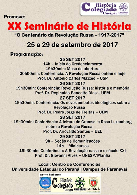O centenário da Revolução Russa - Tema do XX Seminário de História da UNESPAR Campus de Paranavaí